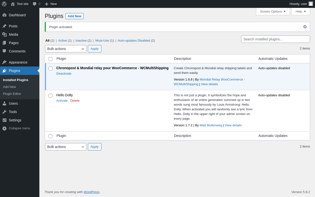 Does "Chronopost & Mondial relay pour WooCommerce - WCMultiShipping" work with WordPress 5.8.2 and PHP 7.4.8? A smoke test was performed on .