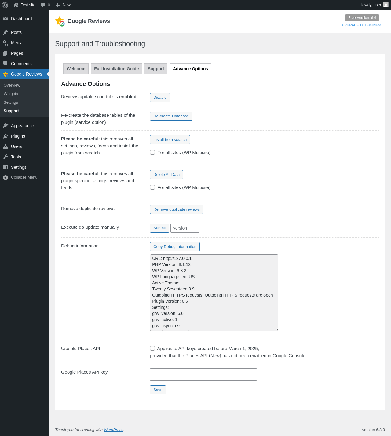 Does "Rich Shortcodes for Google Reviews" work with WordPress 6.8.3 and PHP 8.1.12? A smoke test was performed on .