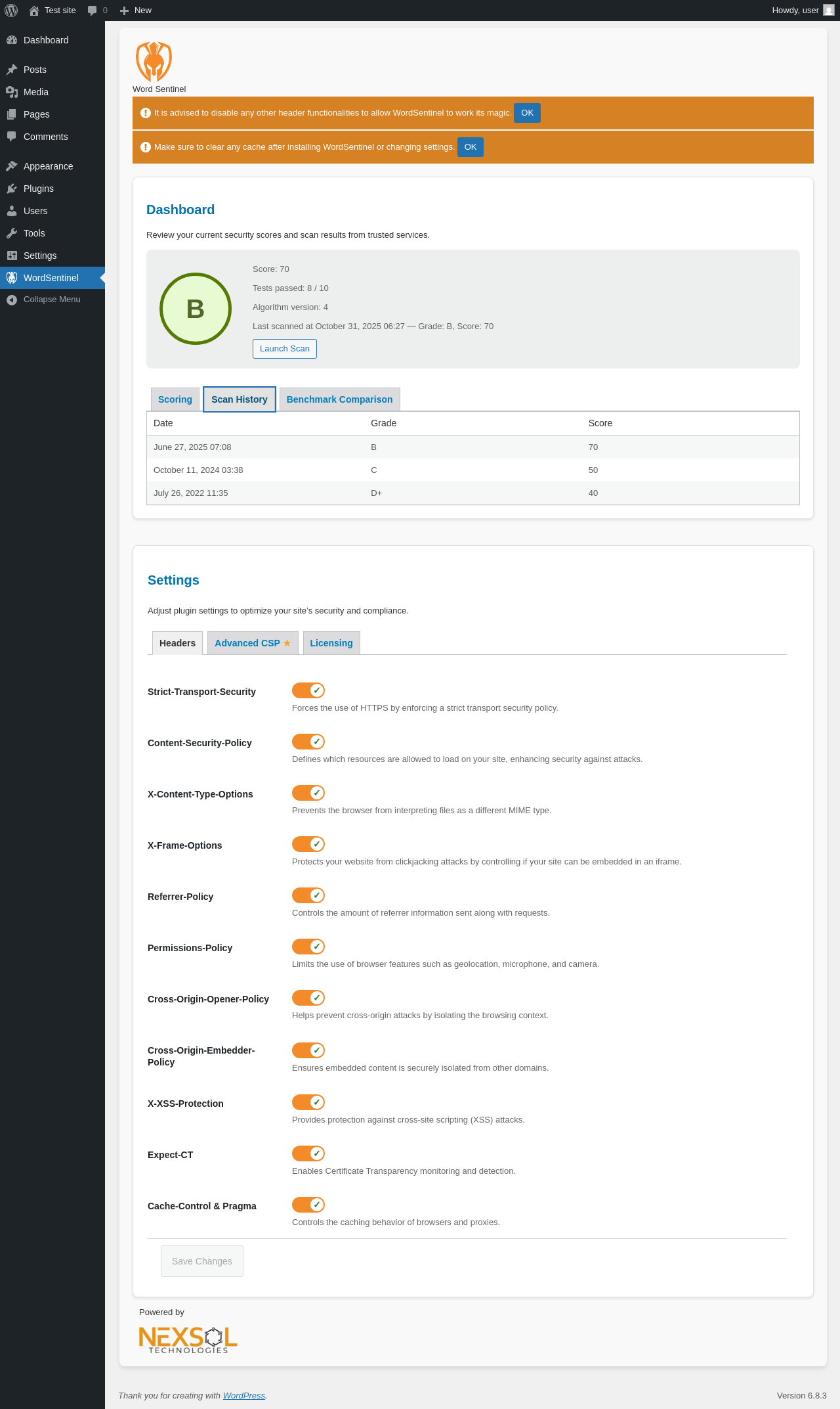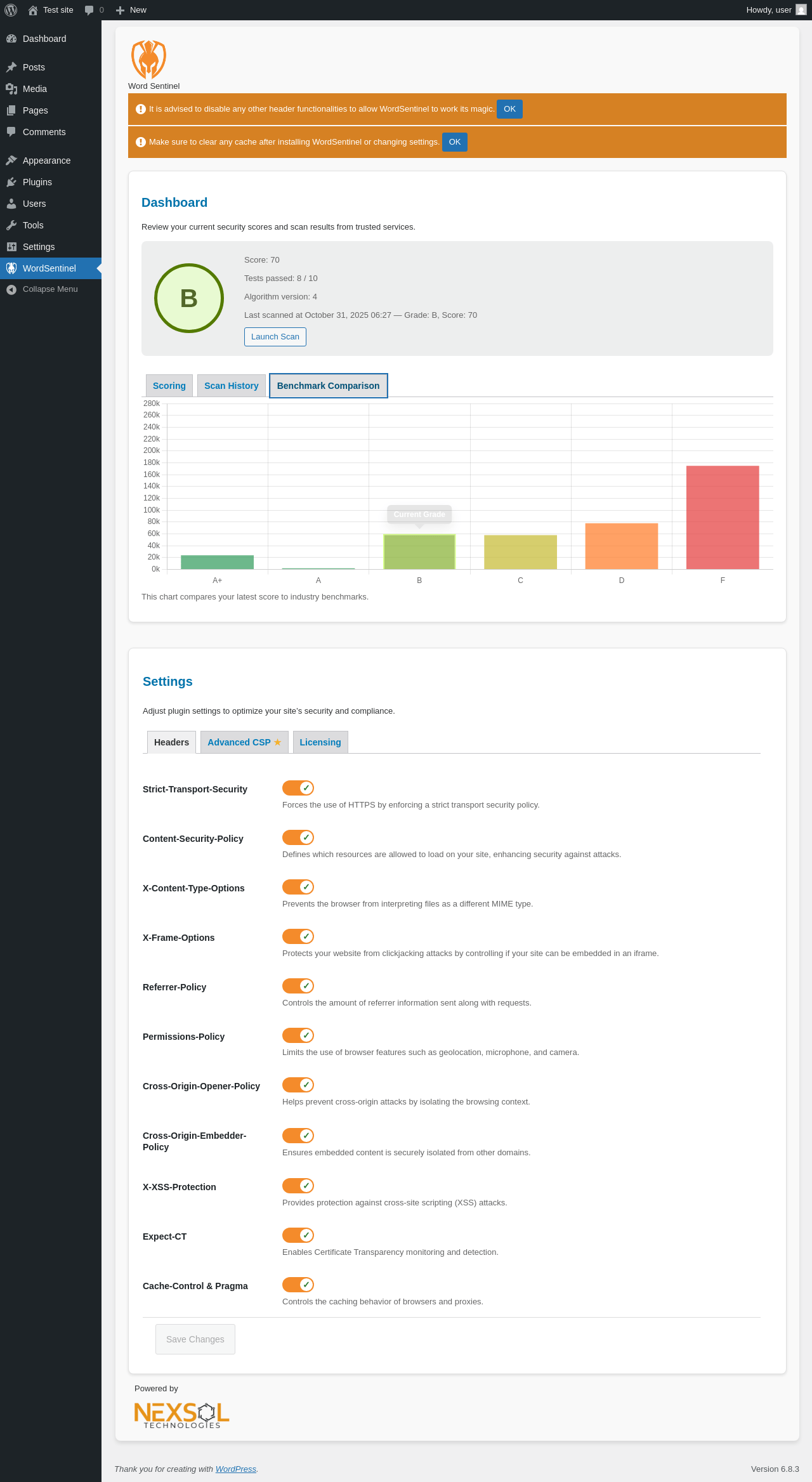 Does WordSentinel work with WordPress 6.8.3 and PHP 8.1.12? A smoke test was performed on .