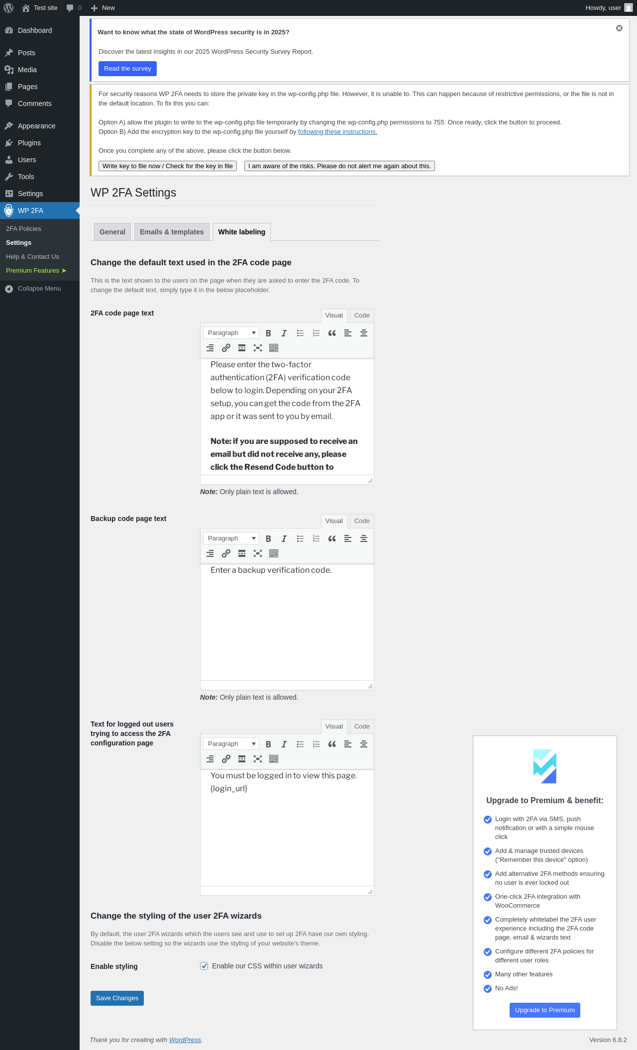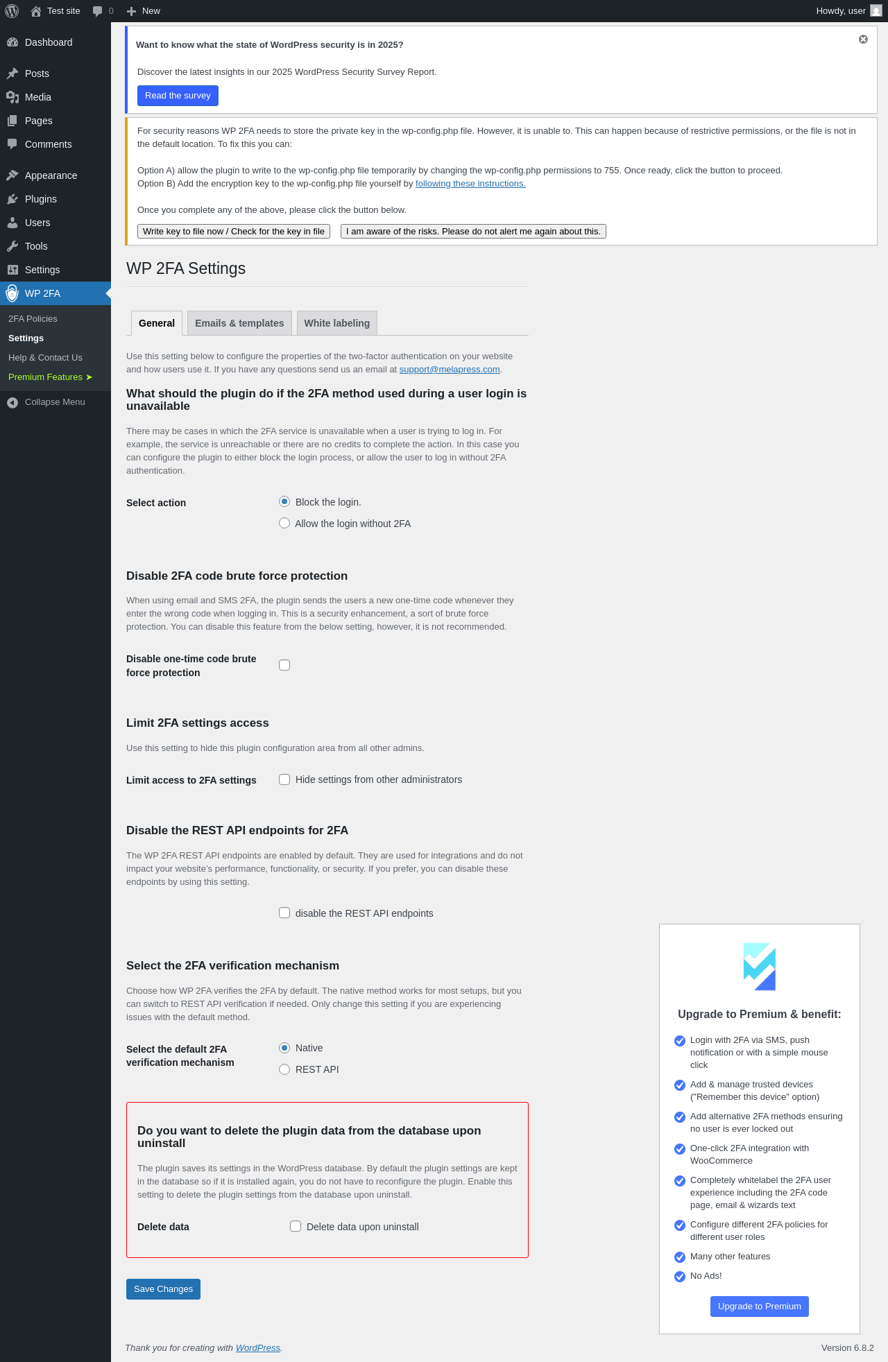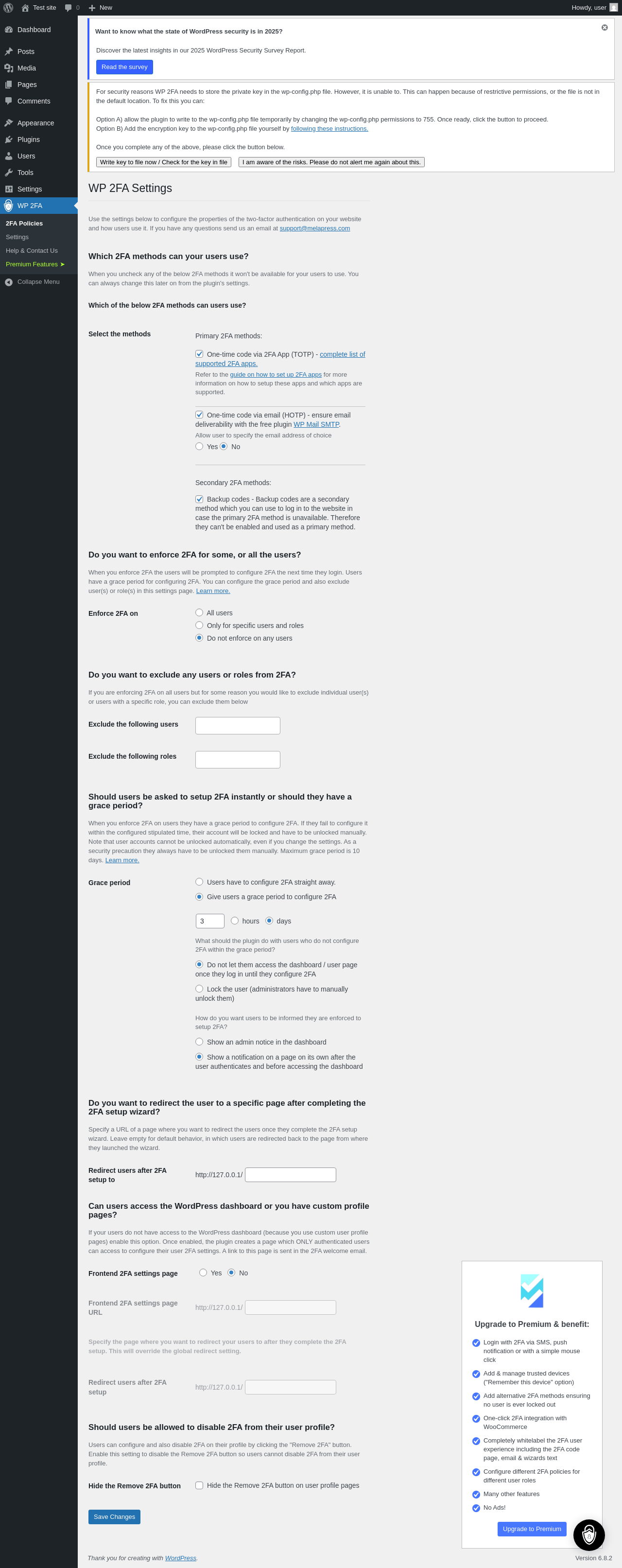 Does "WP 2FA - Two-factor authentication for WordPress" work with WordPress 6.8.2 and PHP 8.1.12? A smoke test was performed on .