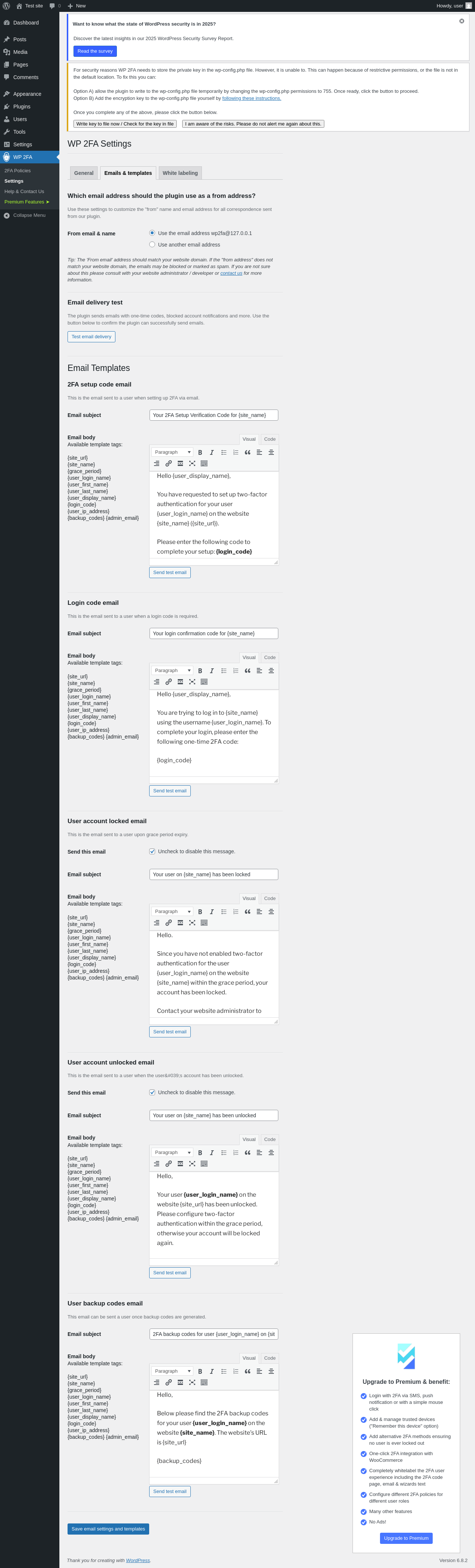 URL | /wp-admin/admin.php?page=wp-2fa-settings&tab=email-settings |