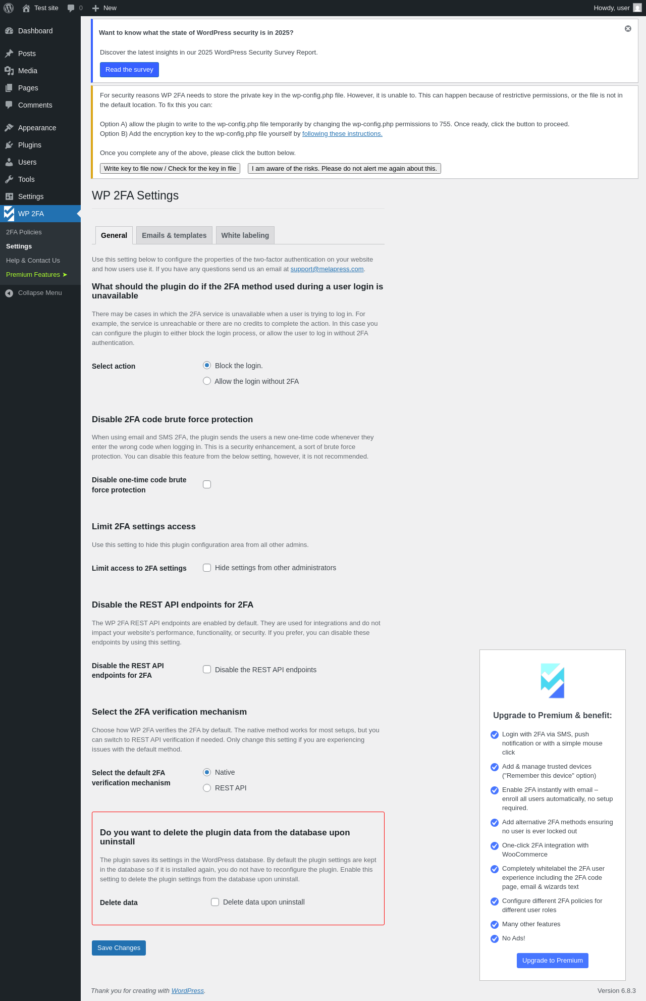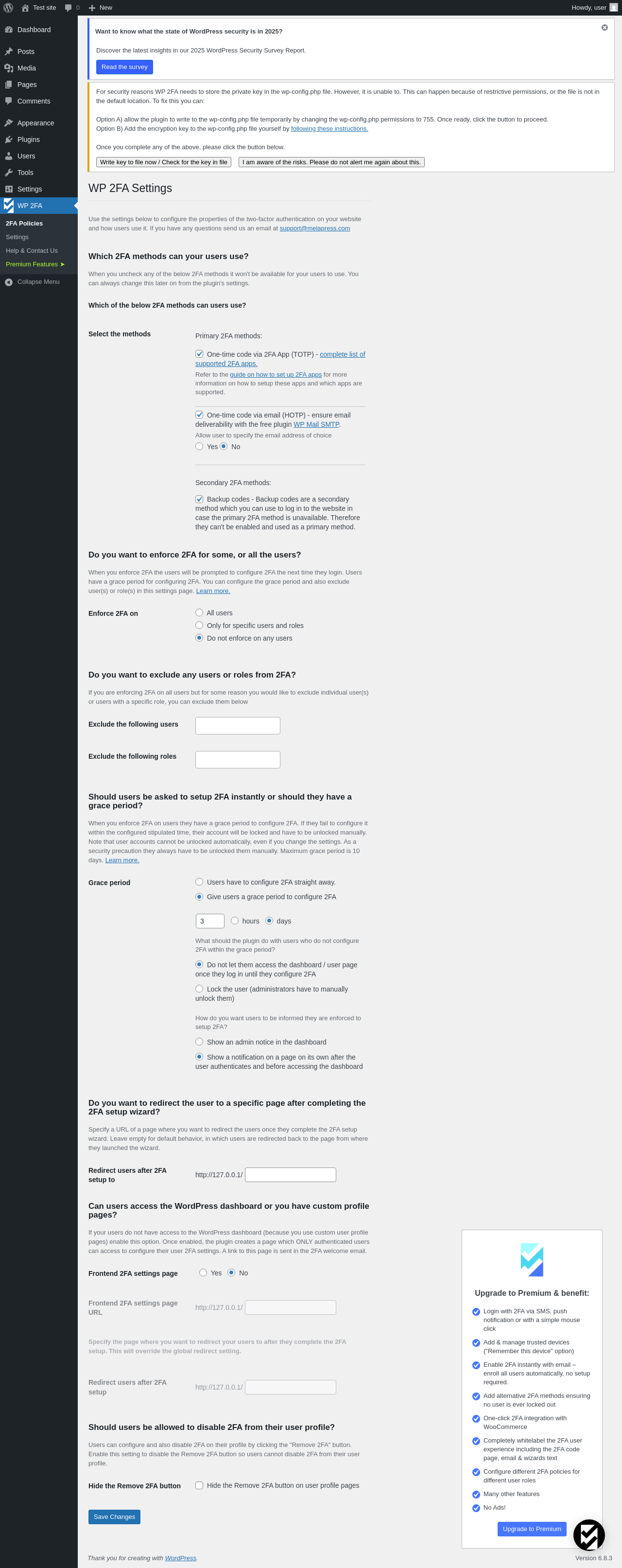 Does "WP 2FA - Two-factor authentication for WordPress" work with WordPress 6.8.3 and PHP 8.1.12? A smoke test was performed on .