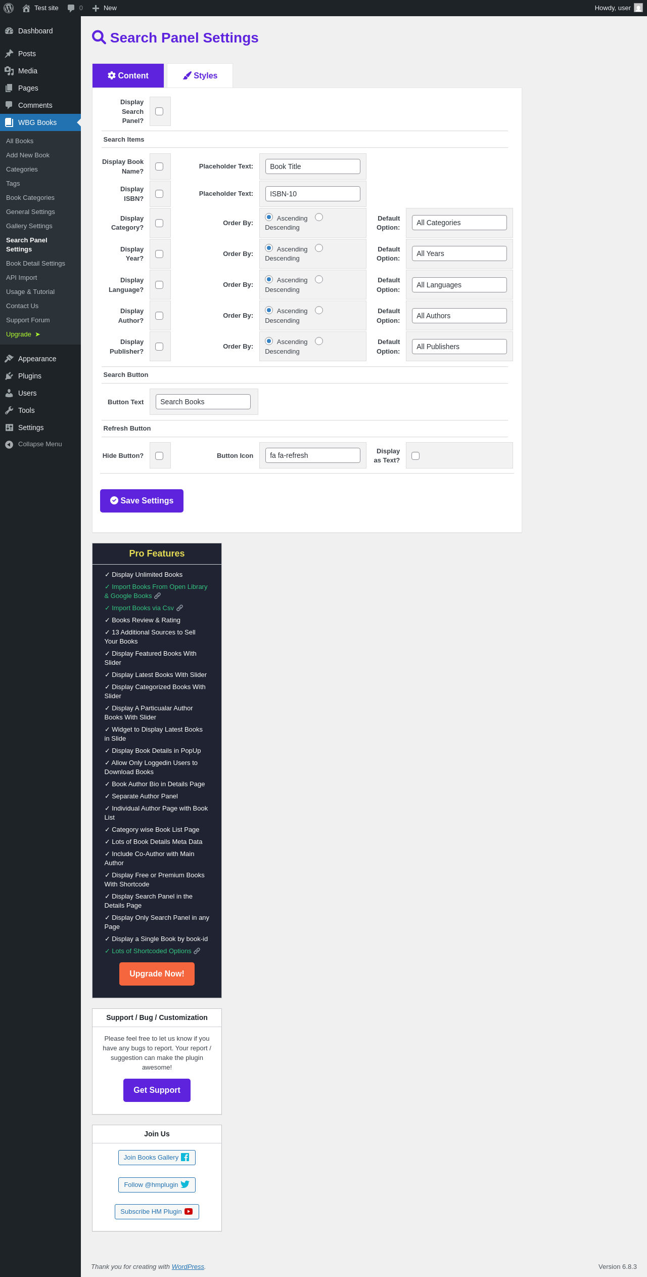 | URL | /wp-admin/edit.php?post_type=books&page=wbg-search-panel-settings&tab=styles |
