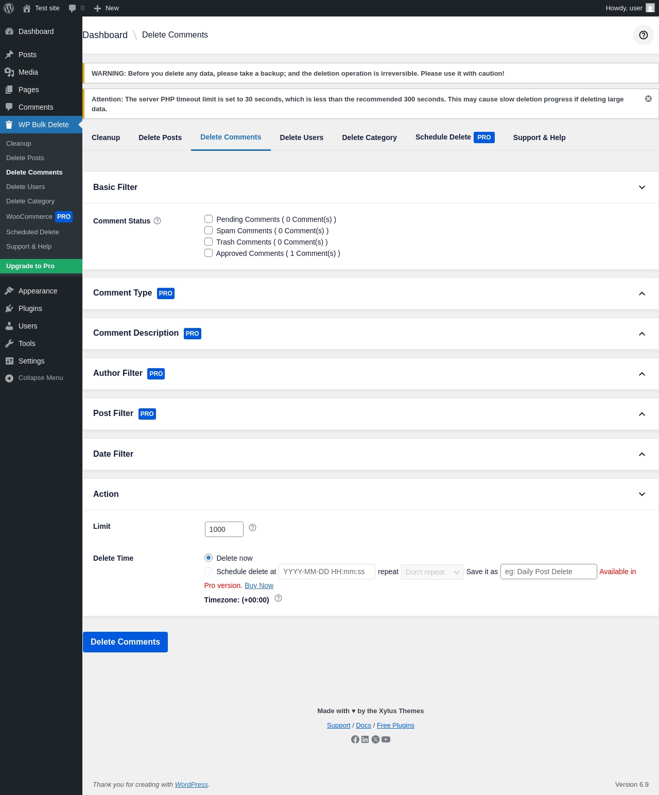 | URL | /wp-admin/admin.php?page=delete_all_actions&tab=by_comments |