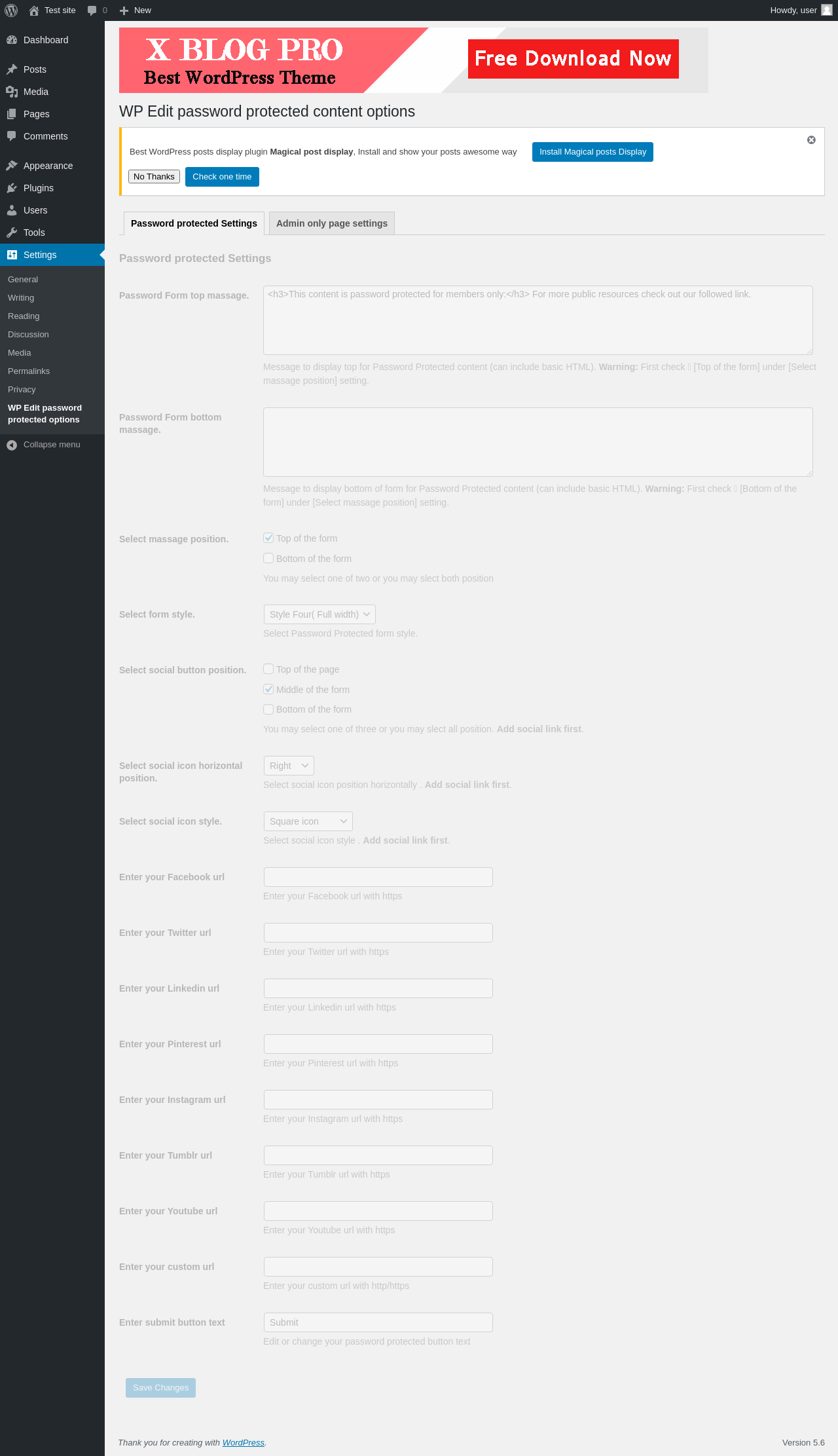 Does Wp Edit Password Protected work with WordPress 5.6 and PHP 7.4.8? A smoke test was performed on .