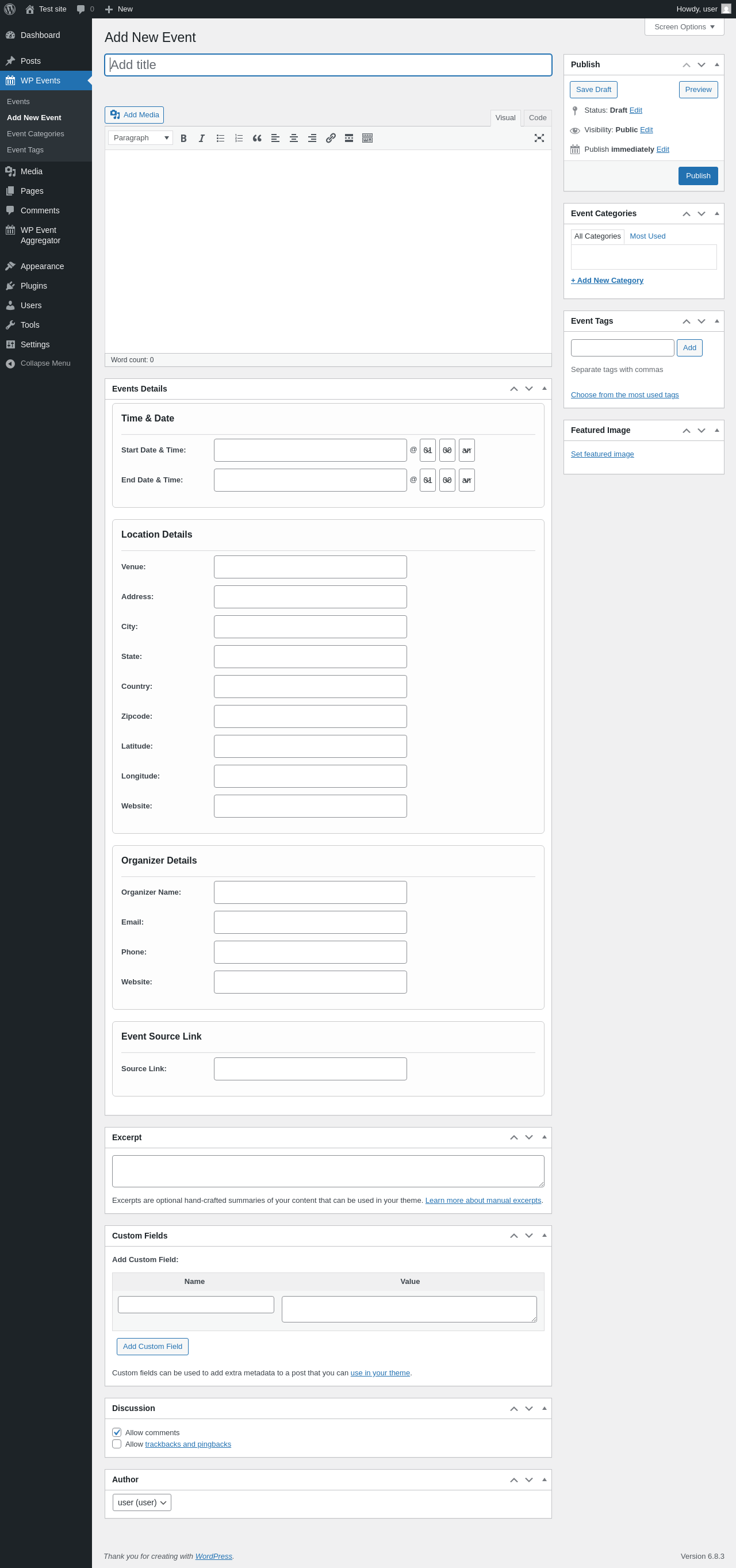 | URL | /wp-admin/post-new.php?post_type=wp_events |