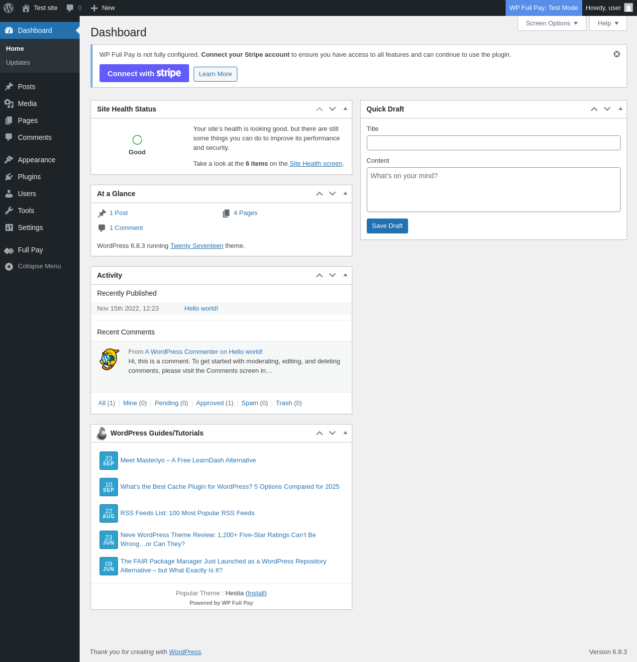 Does WP Full Pay work with WordPress 6.8.3 and PHP 8.1.12? A smoke test was performed on .