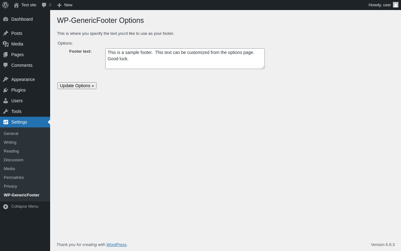 Does WP-GenericFooter work with WordPress 6.8.3 and PHP 8.1.12? A smoke test was performed on .