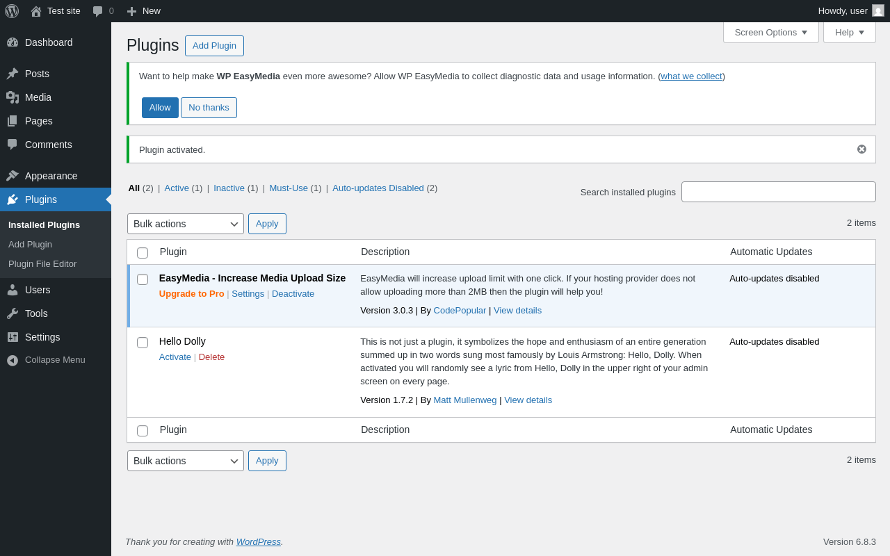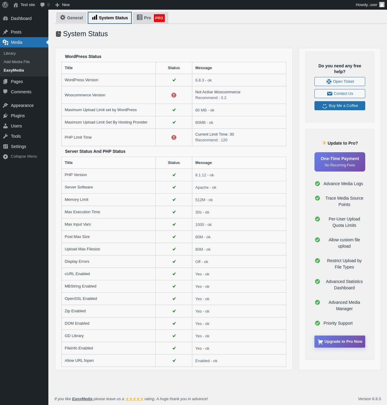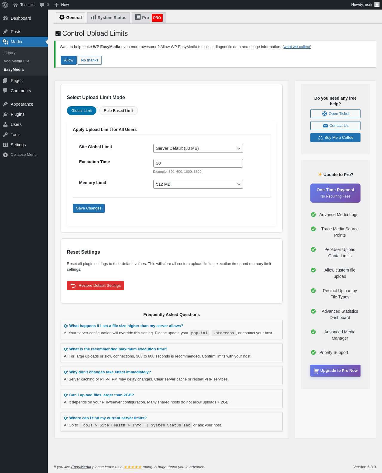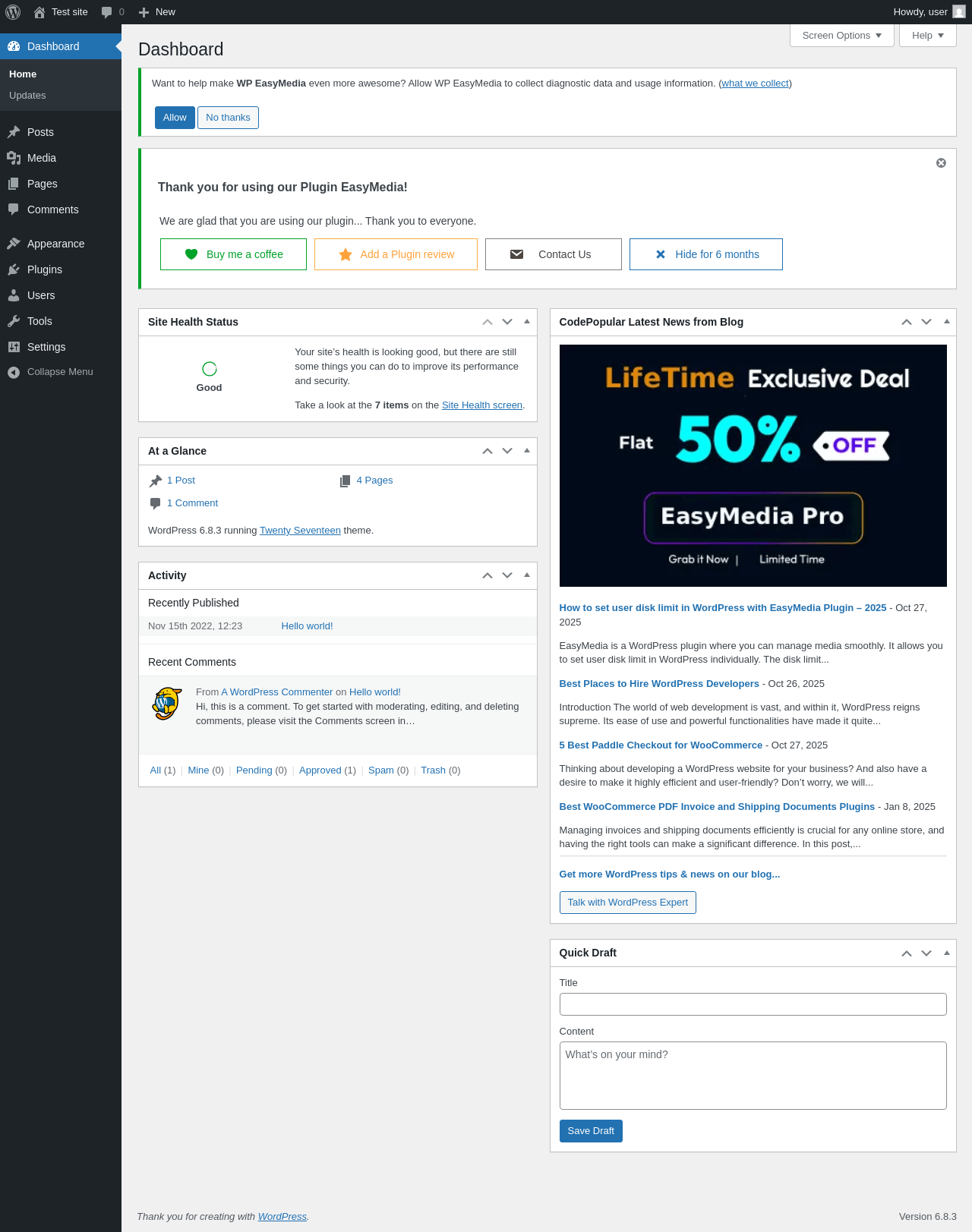 Does "EasyMedia - Increase Media Upload Size" work with WordPress 6.8.3 and PHP 8.1.12? A smoke test was performed on .
