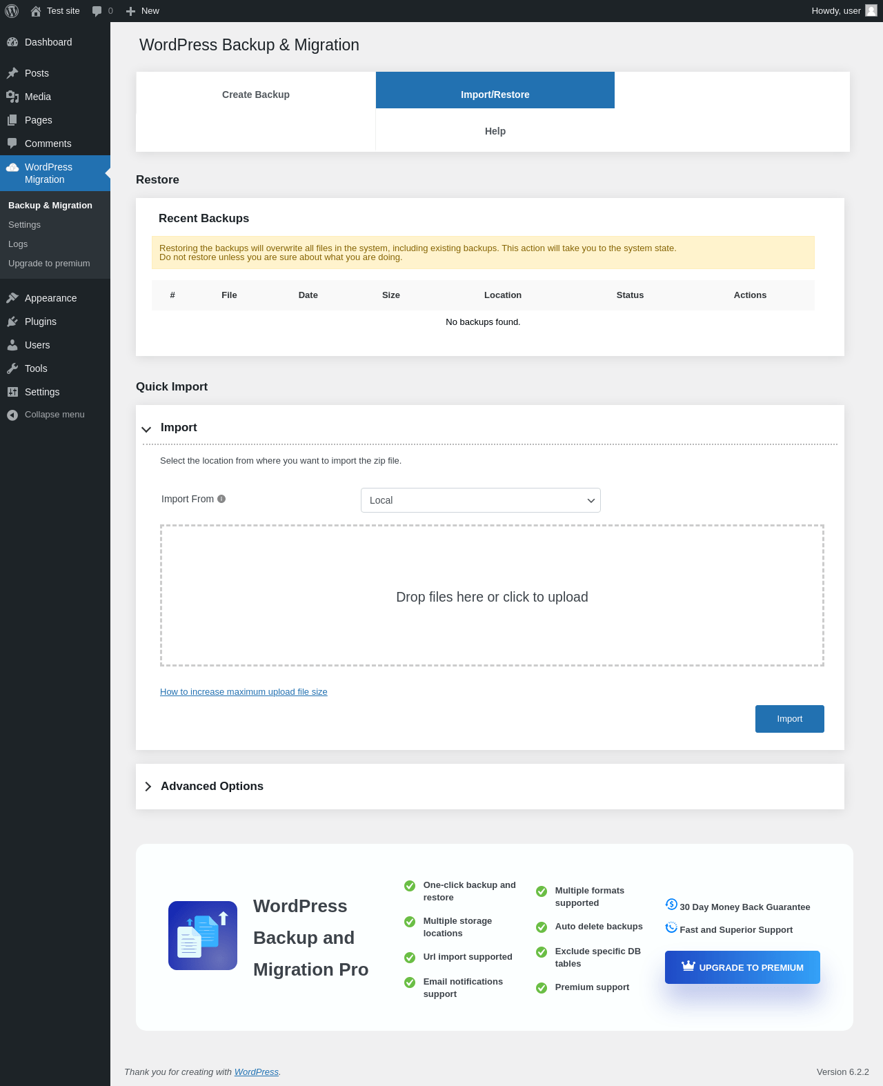 Does WordPress Backup & Migration work with WordPress 6.2.2 and PHP 8.1.12? A smoke test was performed on .