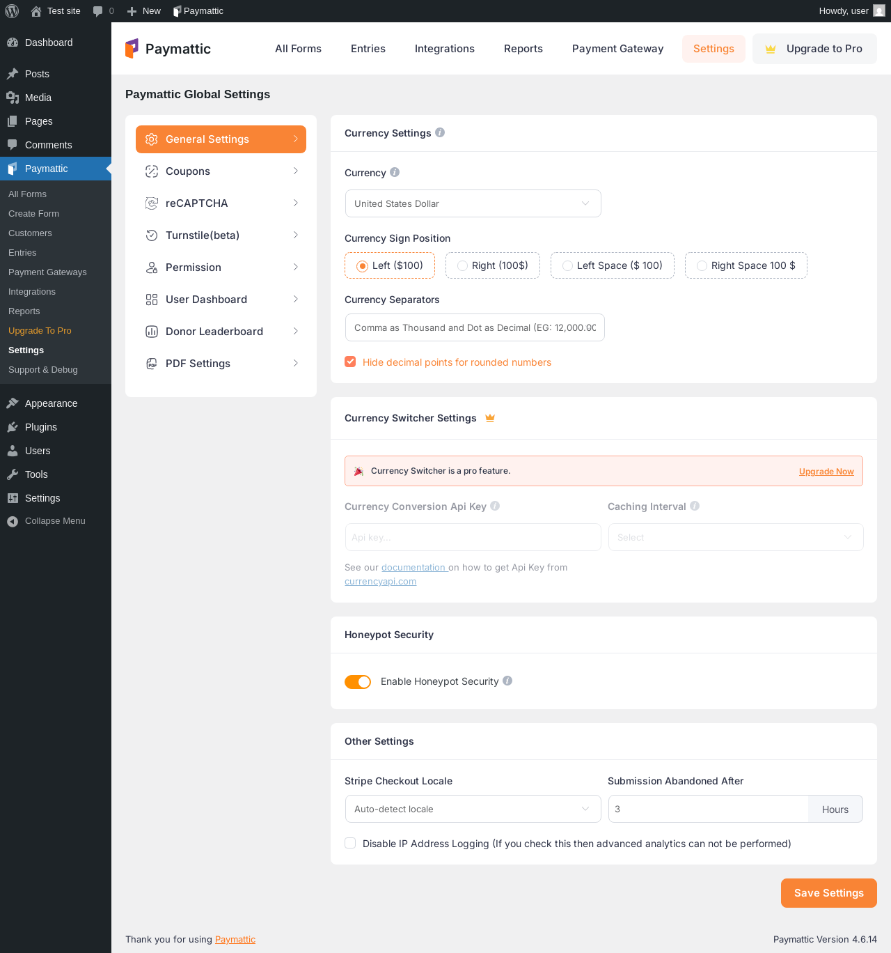 | URL | /wp-admin/admin.php?page=wppayform_settings |