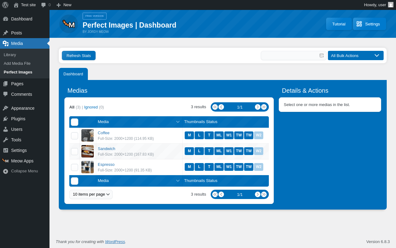 Does Perfect Images work with WordPress 6.8.3 and PHP 8.1.12? A smoke test was performed on .