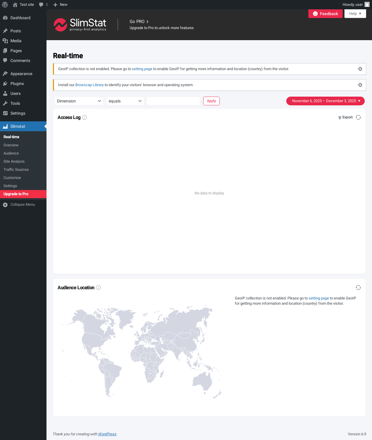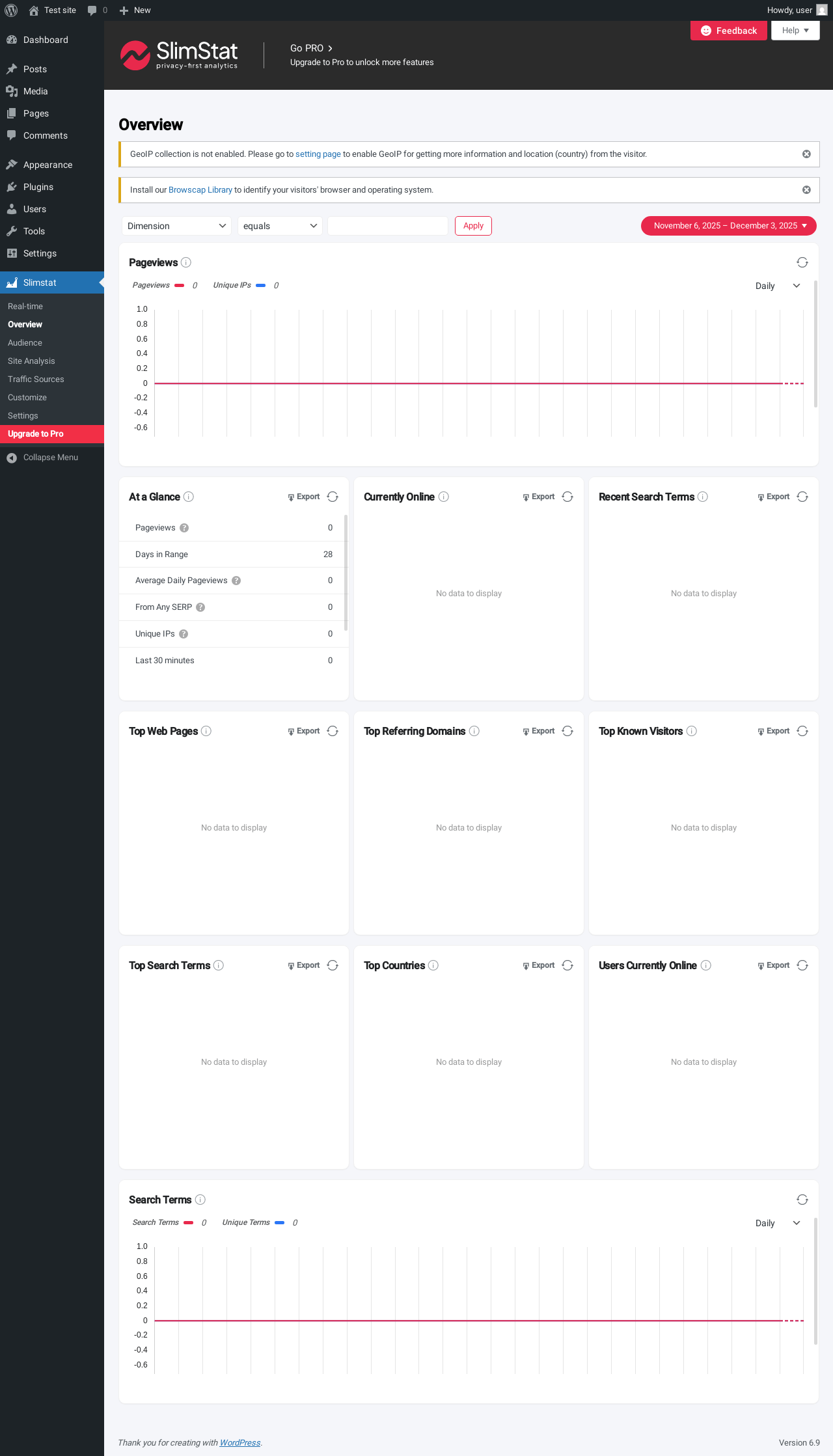 Does SlimStat Analytics work with WordPress 6.8.3 and PHP 8.1.12? A smoke test was performed on 2025-10-01 00:10:45 UTC .