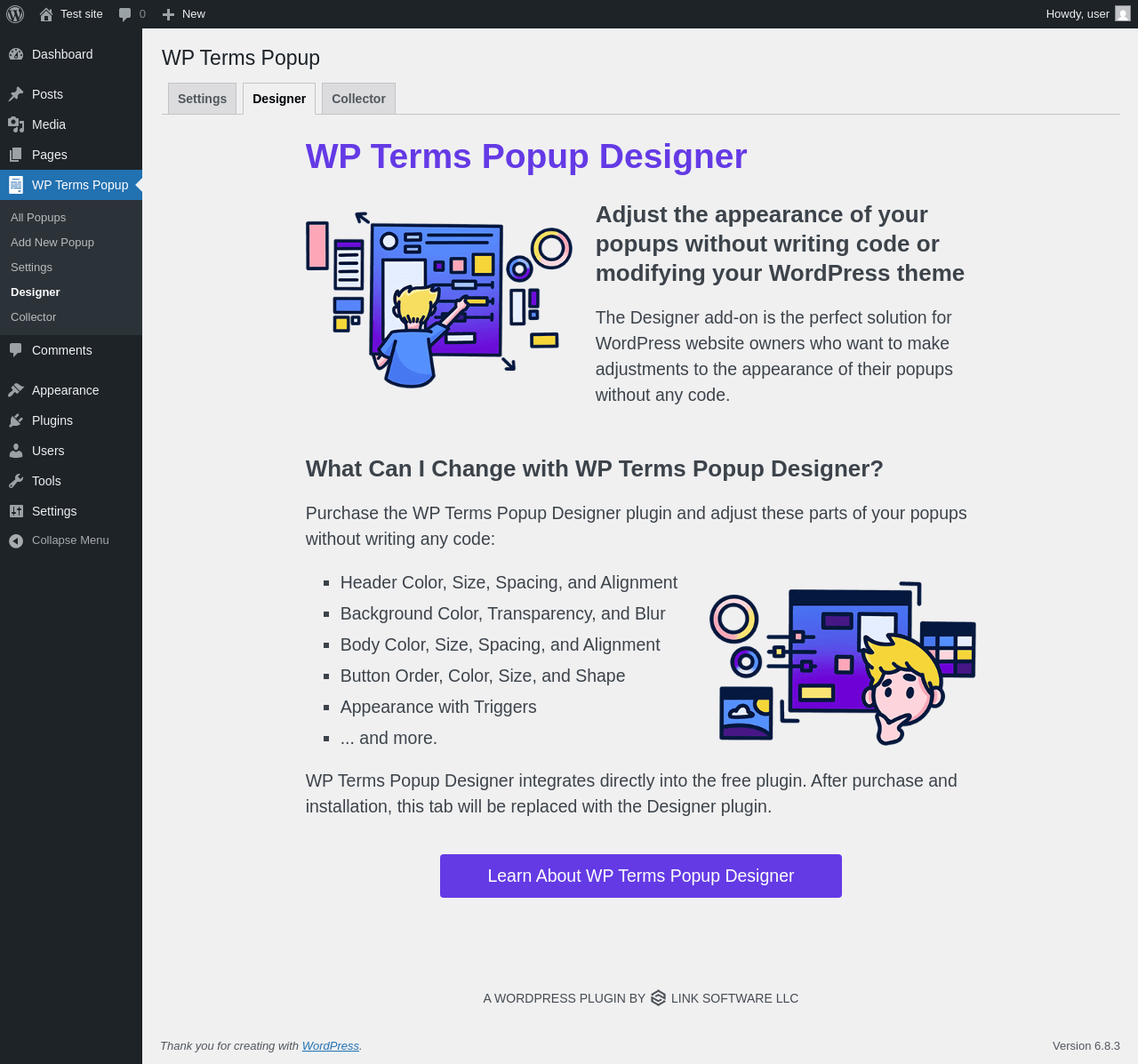 URL | /wp-admin/edit.php?post_type=termpopup&page=wp-terms-popup-designer |