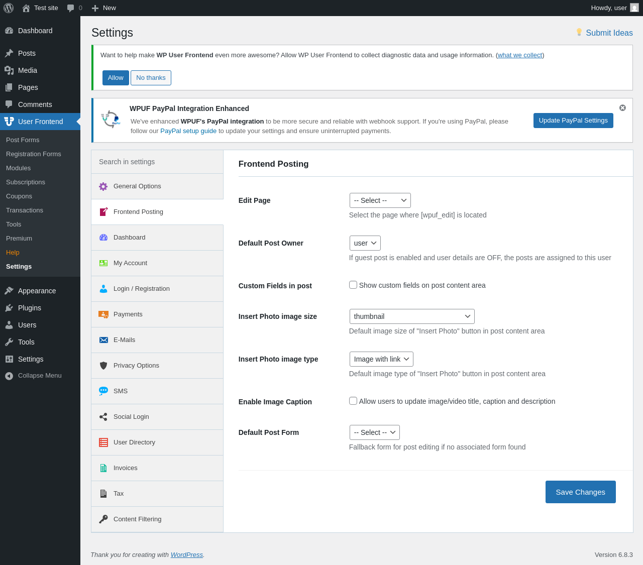 wpuf_subscription Subscription wpuf_forms Forms wpuf_profile Forms wpuf_input Posts