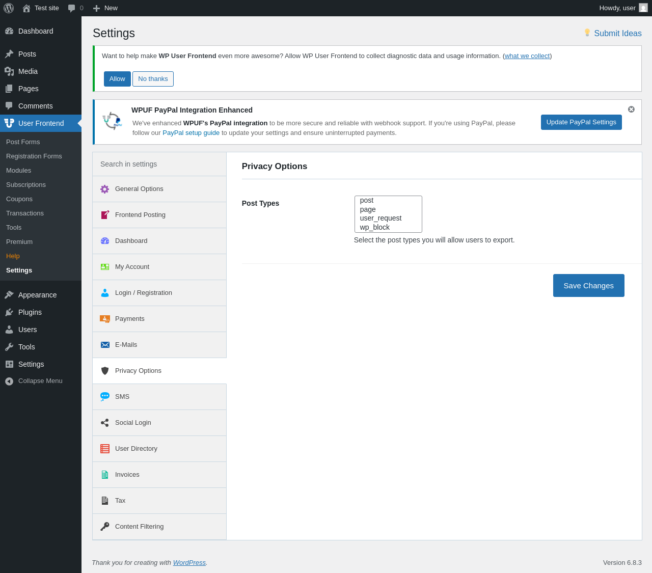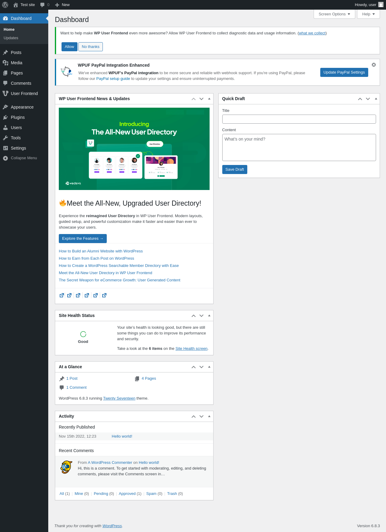 Does WP User Frontend work with WordPress 6.8.3 and PHP 8.1.12? A smoke test was performed on 2025-10-01 07:44:03 UTC .