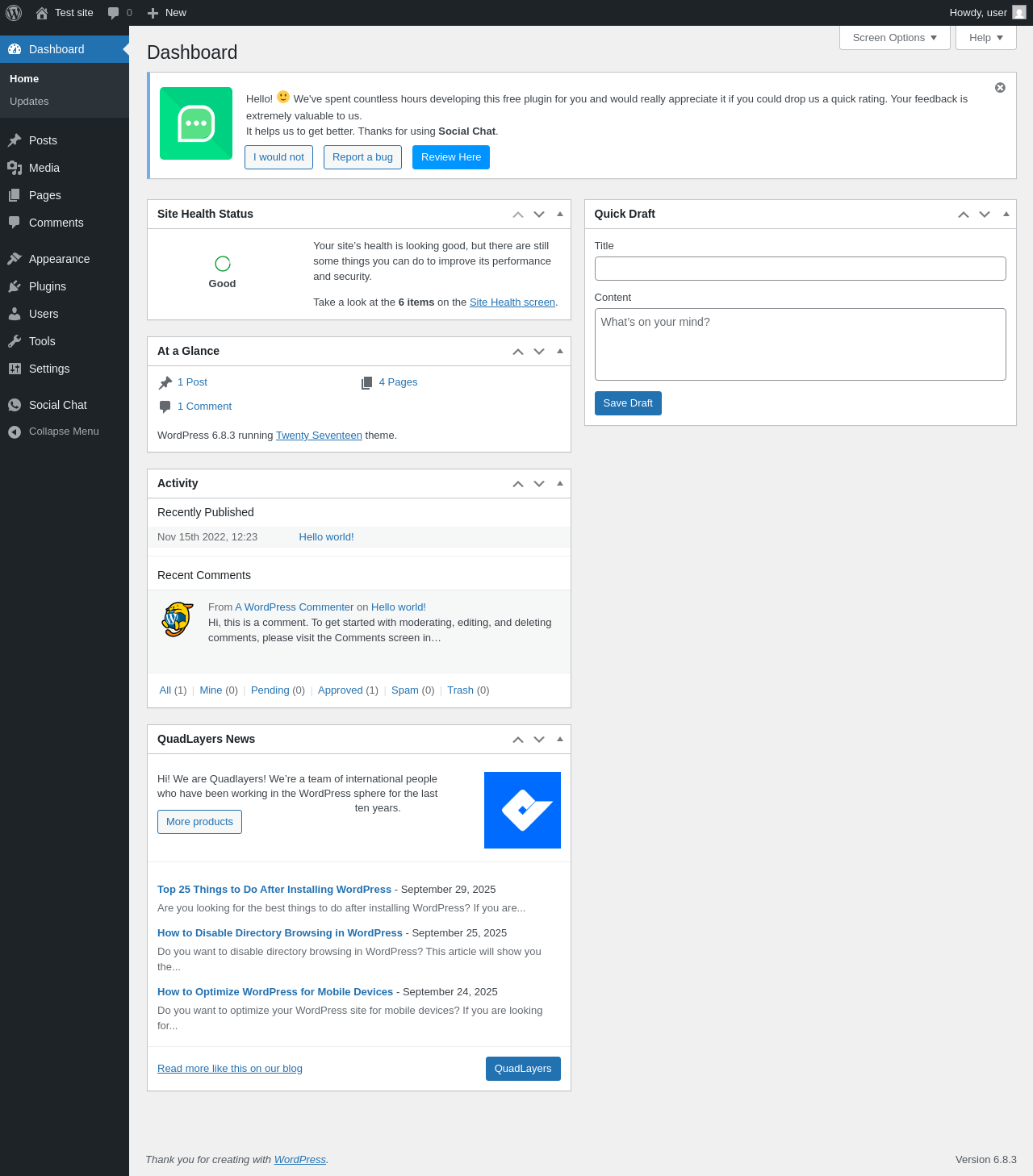 Does Social Chat work with WordPress 6.8.3 and PHP 8.1.12? A smoke test was performed on .
