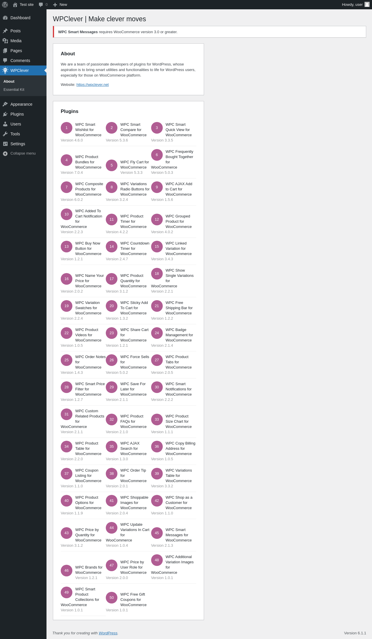 Does "WPC Smart Messages for WooCommerce" work with WordPress 6.1.1 and PHP 8.1.12? A smoke test was performed on .