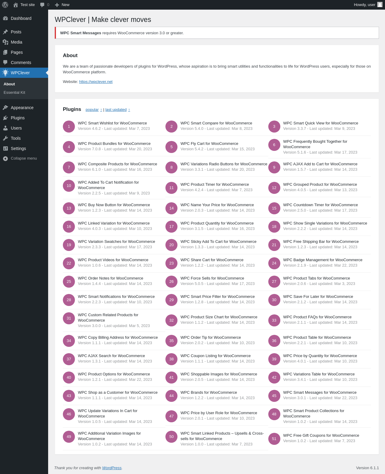 Does "WPC Smart Messages for WooCommerce" work with WordPress 6.1.1 and PHP 8.1.12? A smoke test was performed on .