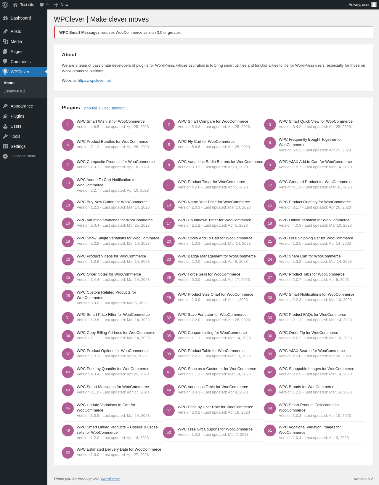 Does "WPC Smart Messages for WooCommerce" work with WordPress 6.2 and PHP 8.1.12? A smoke test was performed on .