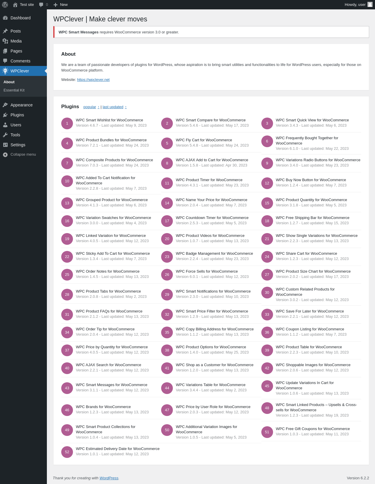 Does "WPC Smart Messages for WooCommerce" work with WordPress 6.2.2 and PHP 8.1.12? A smoke test was performed on .