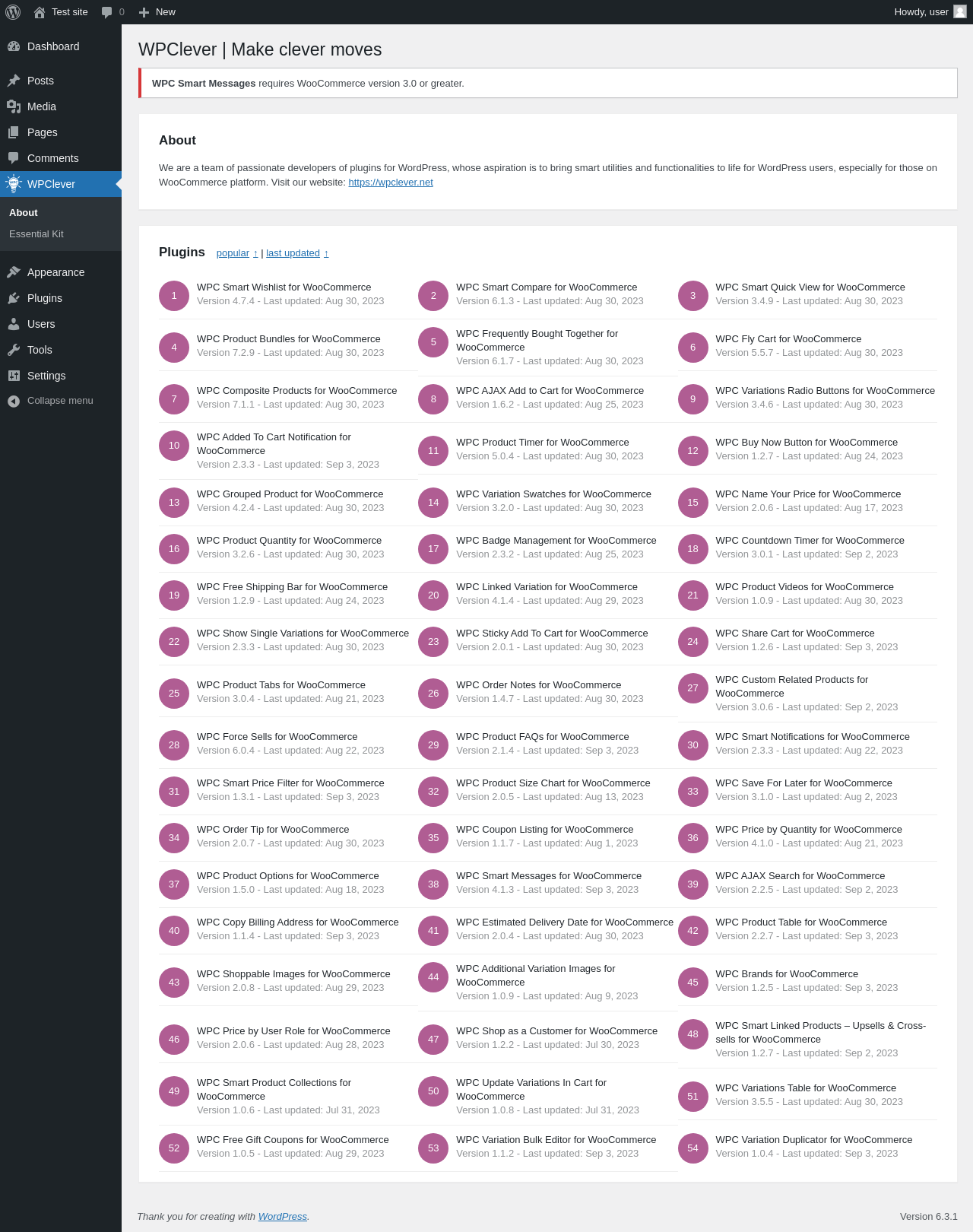 Does "WPC Smart Messages for WooCommerce" work with WordPress 6.3.1 and PHP 8.1.12? A smoke test was performed on .