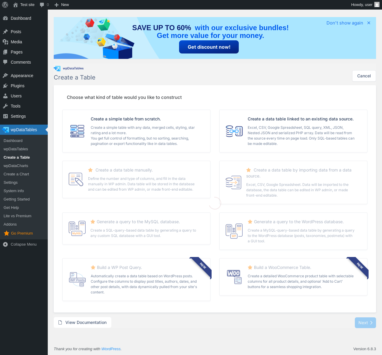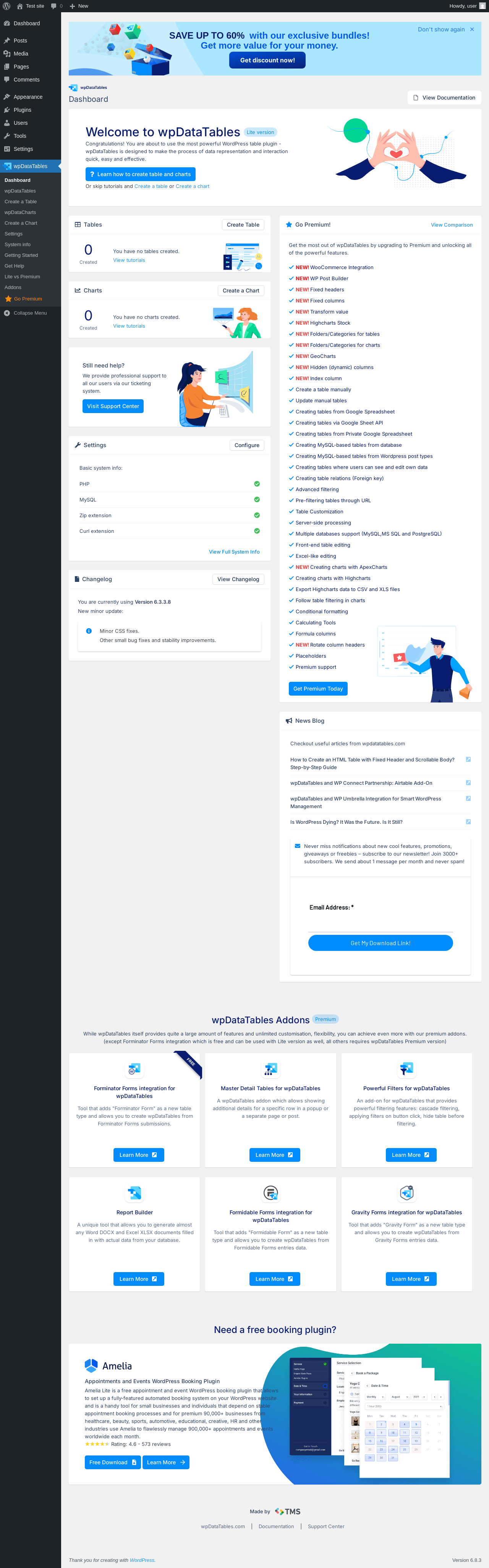 Does "wpDataTables - Tables & Table Charts" work with WordPress 6.8.3 and PHP 8.1.12? A smoke test was performed on .