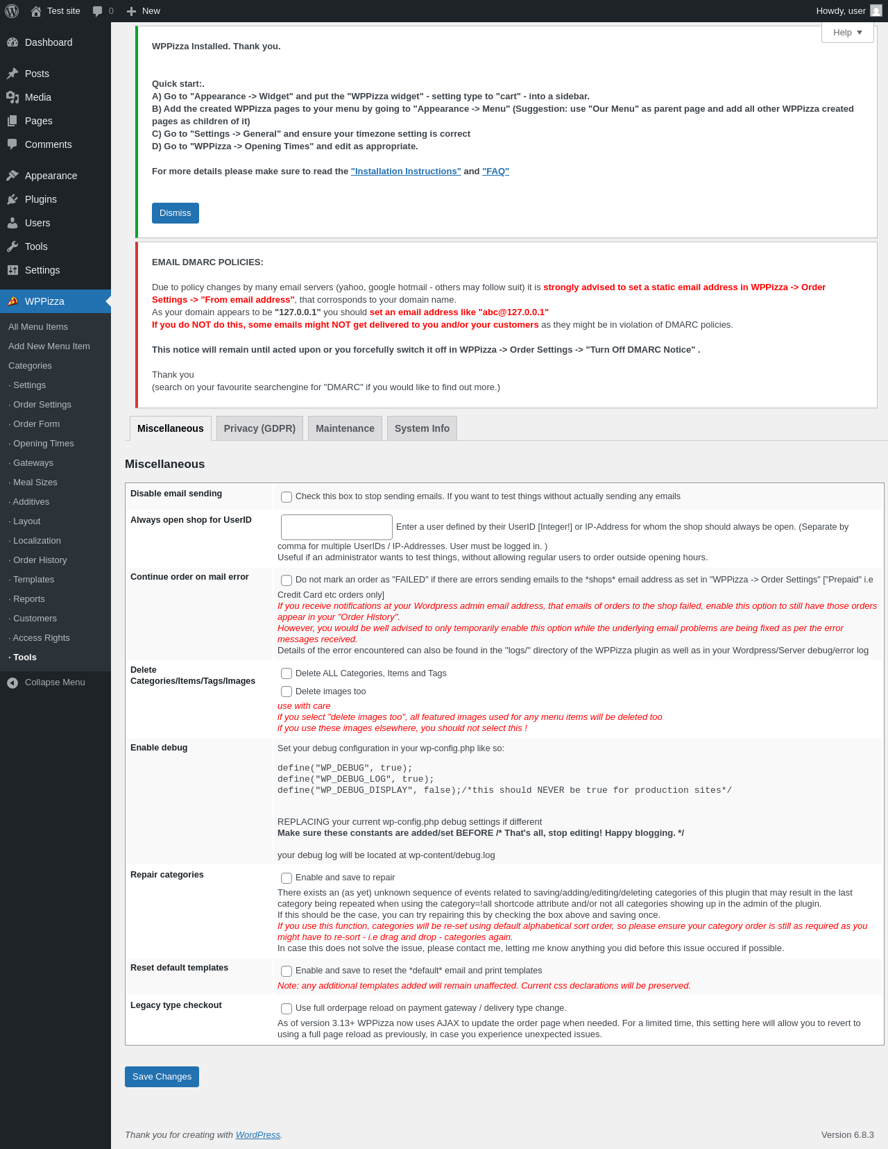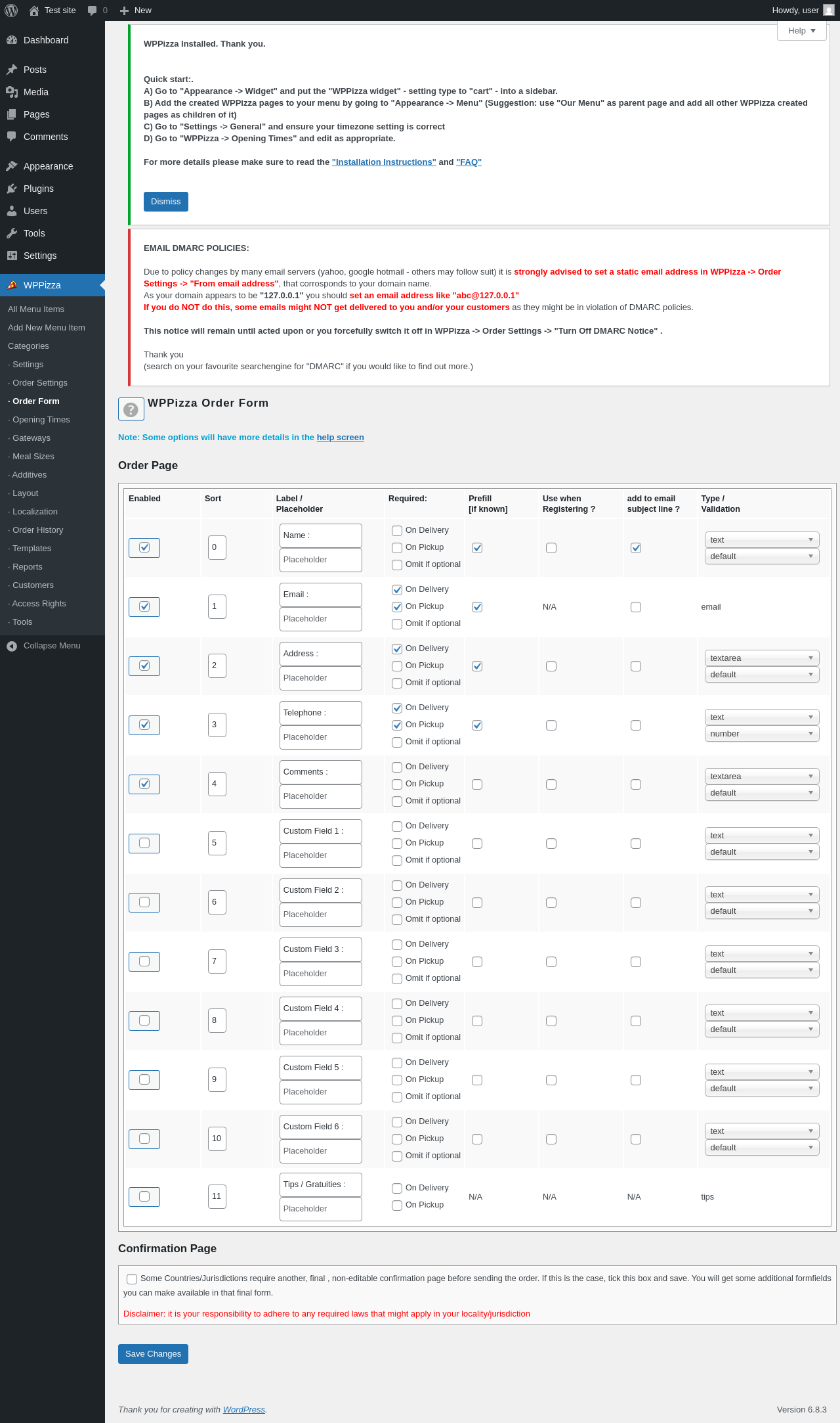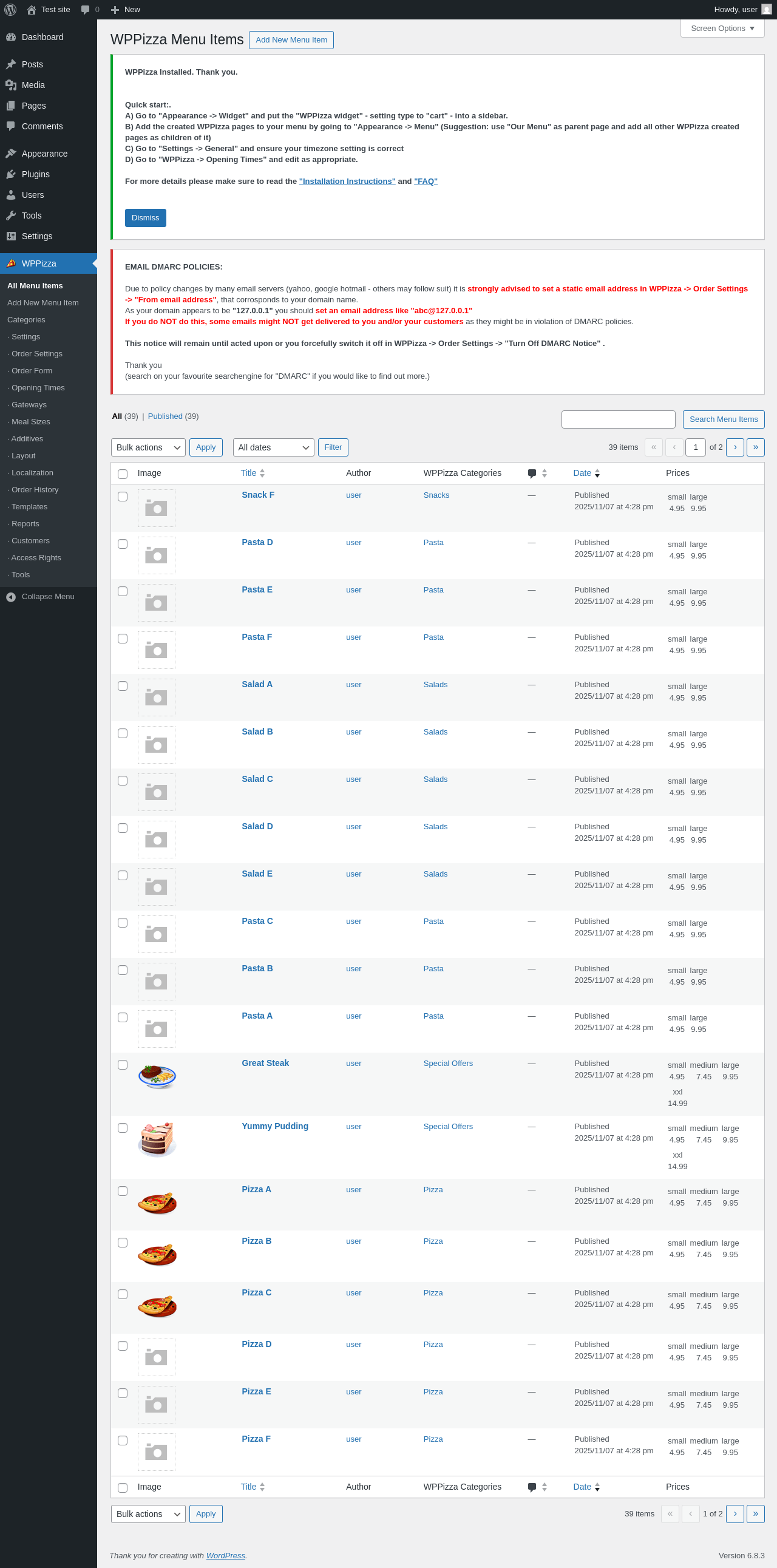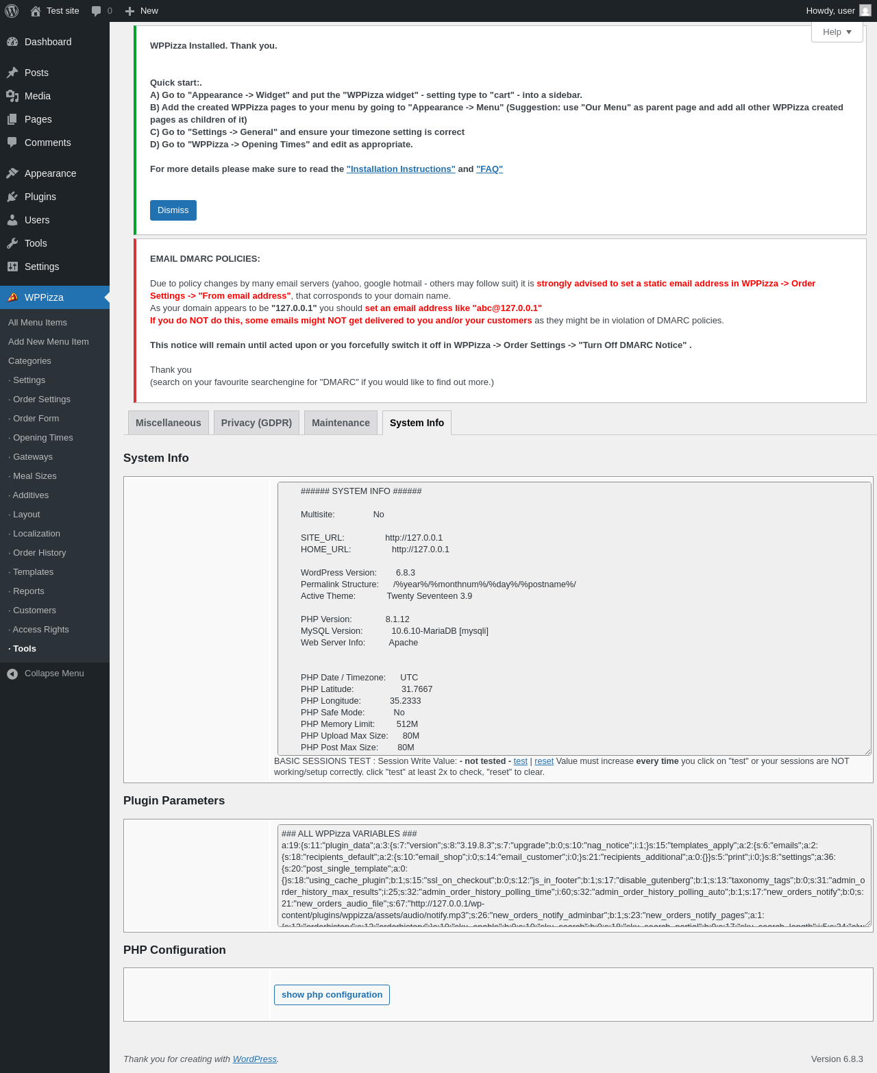 Does WPPizza work with WordPress 6.8.3 and PHP 8.1.12? A smoke test was performed on .