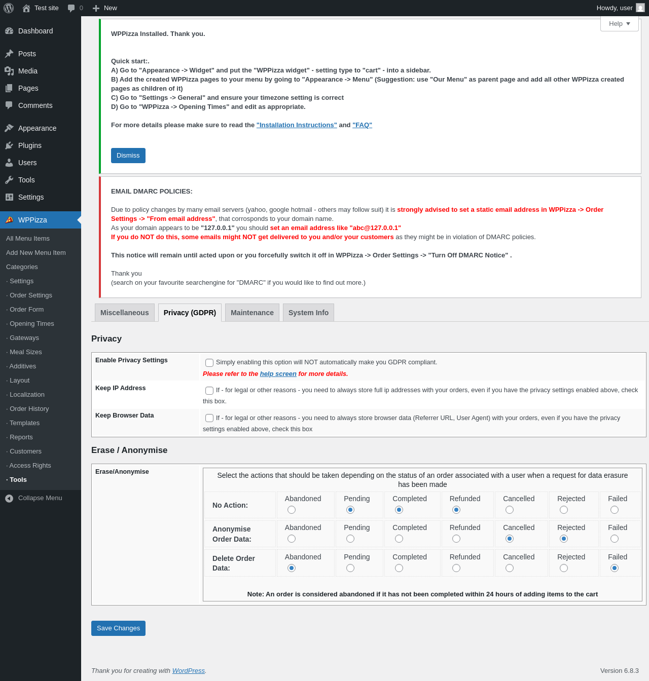 | URL | /wp-admin/edit.php?post_type=wppizza&page=tools&tab=privacy |