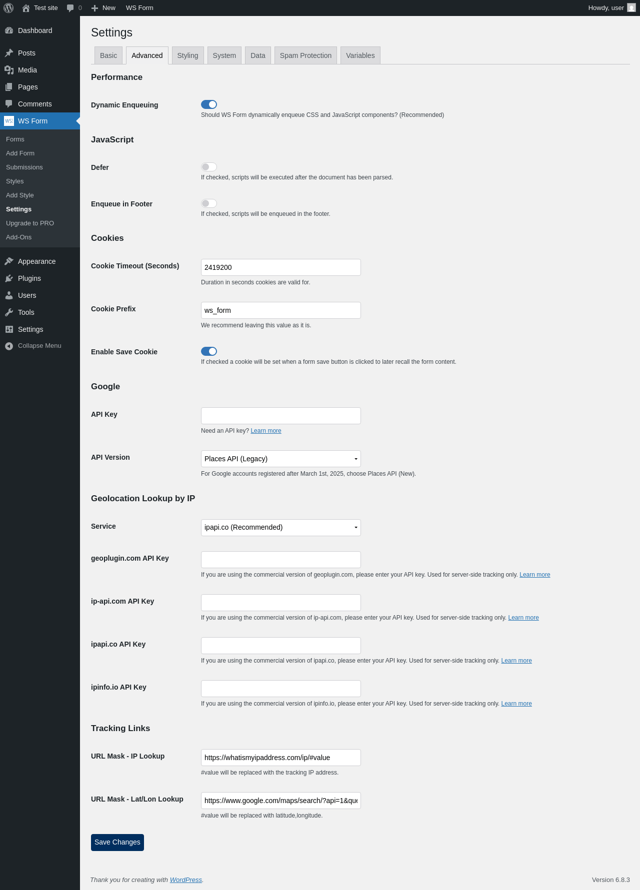 | URL | /wp-admin/admin.php?page=ws-form-settings&tab=advanced |