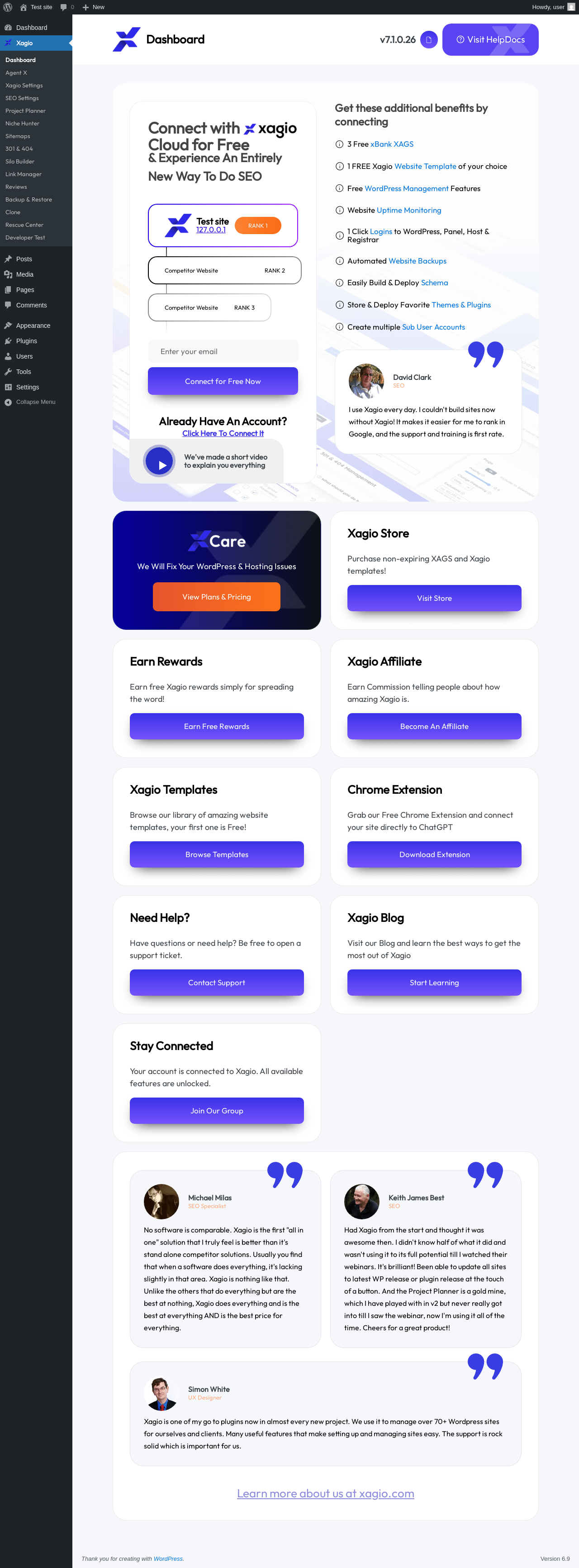 | URL | /wp-admin/admin.php?page=xagio-test |