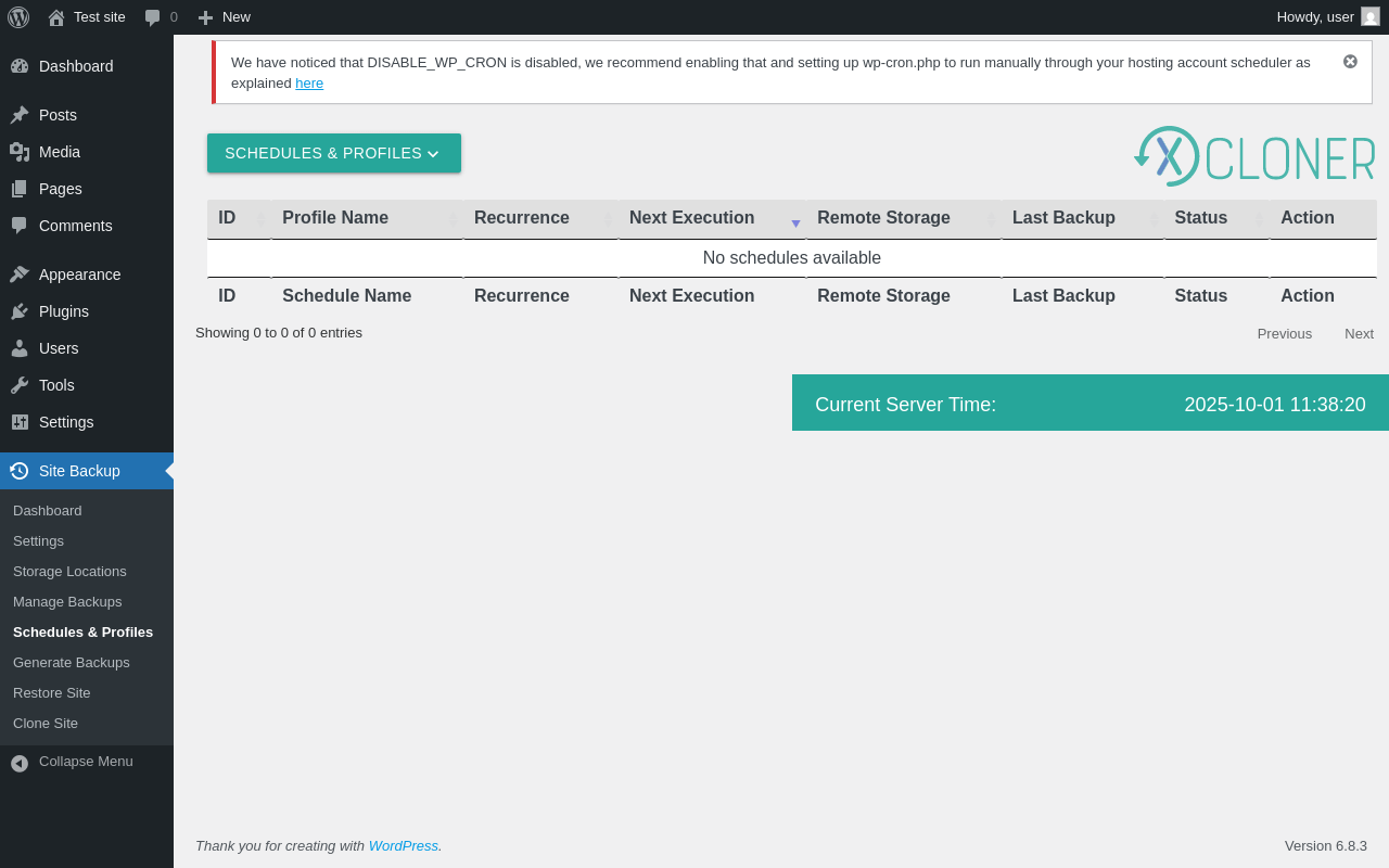 Does "XCloner - Site Backup and Restore" work with WordPress 6.8.3 and PHP 8.1.12? A smoke test was performed on .