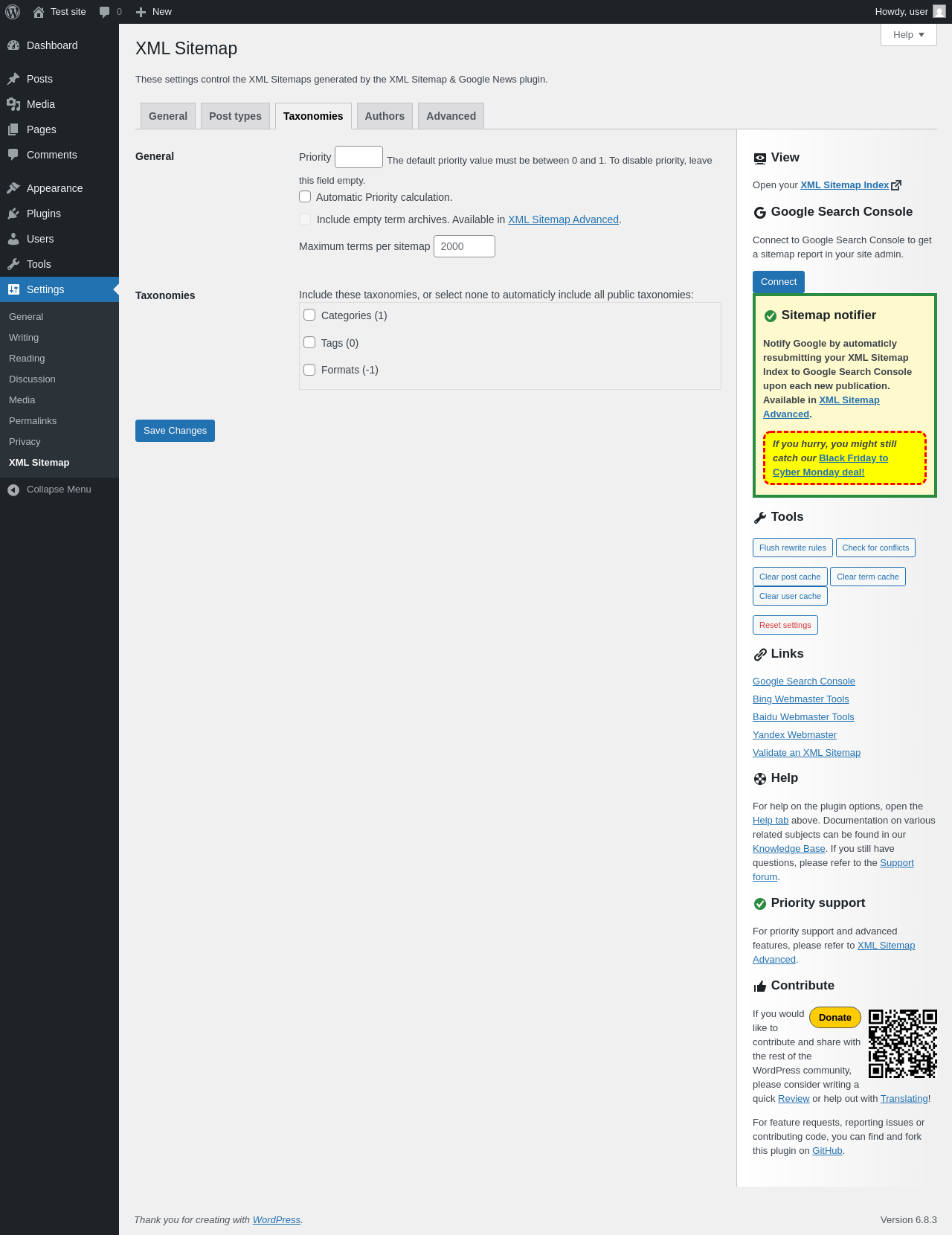 | URL | /wp-admin/options-general.php?page=xmlsf&tab=taxonomies |